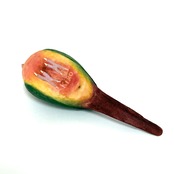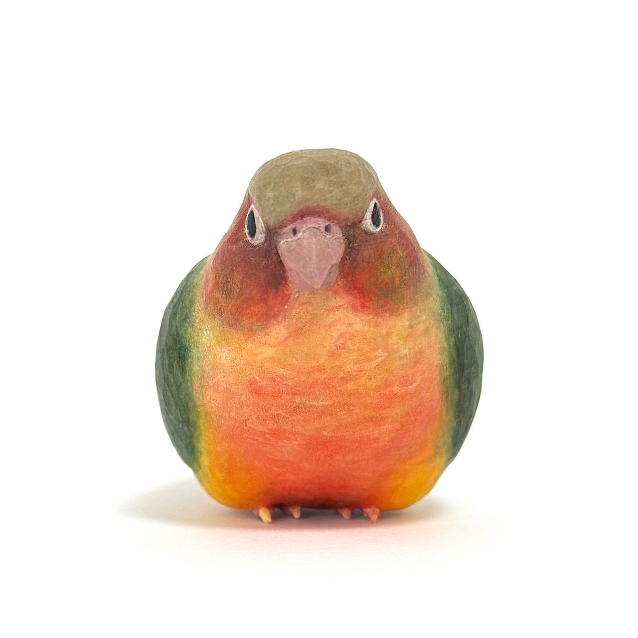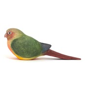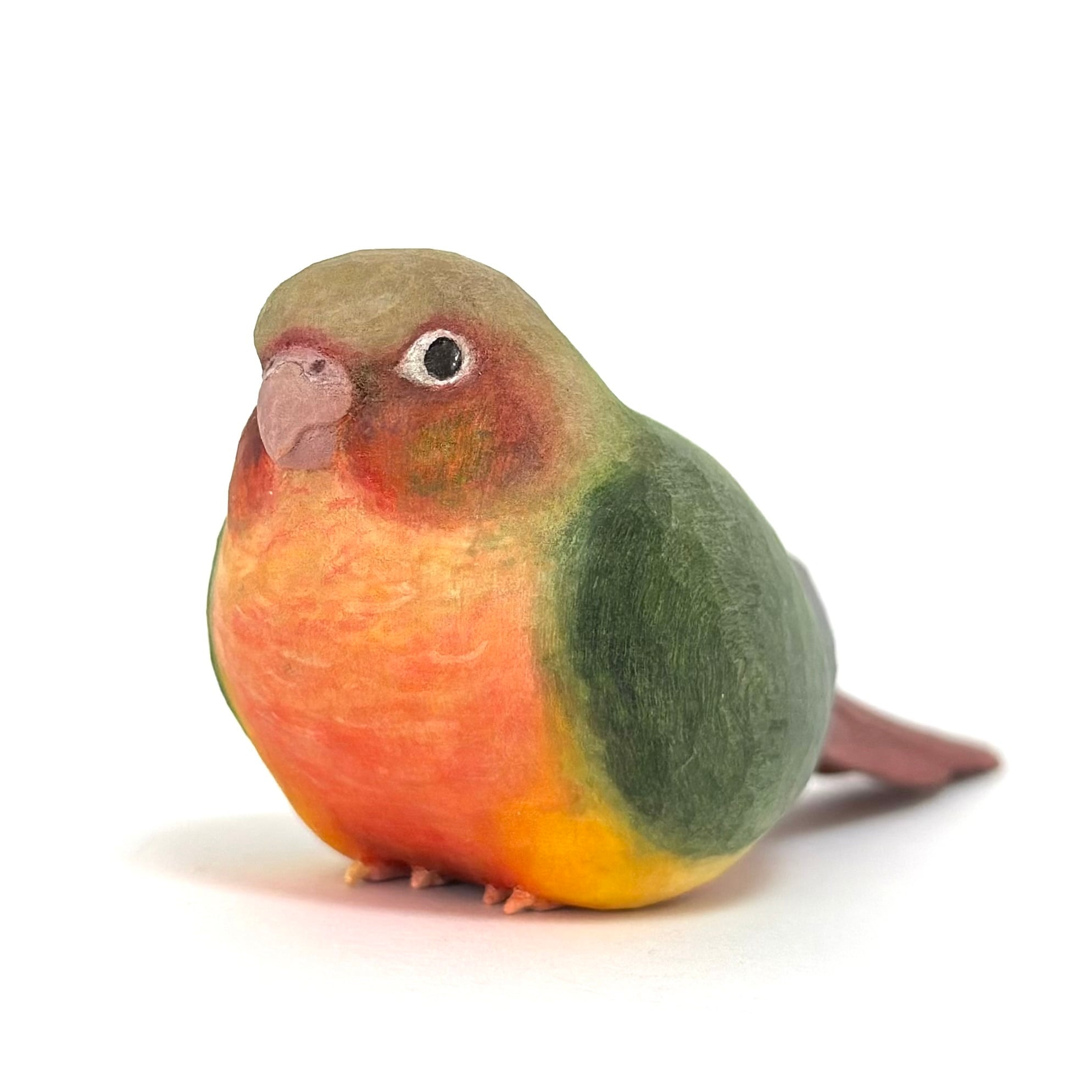 A handcrafted wooden sculpture of a pineapple conure.