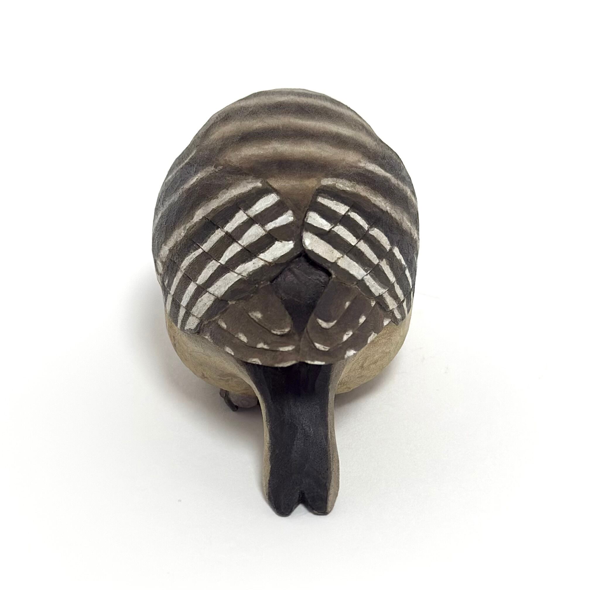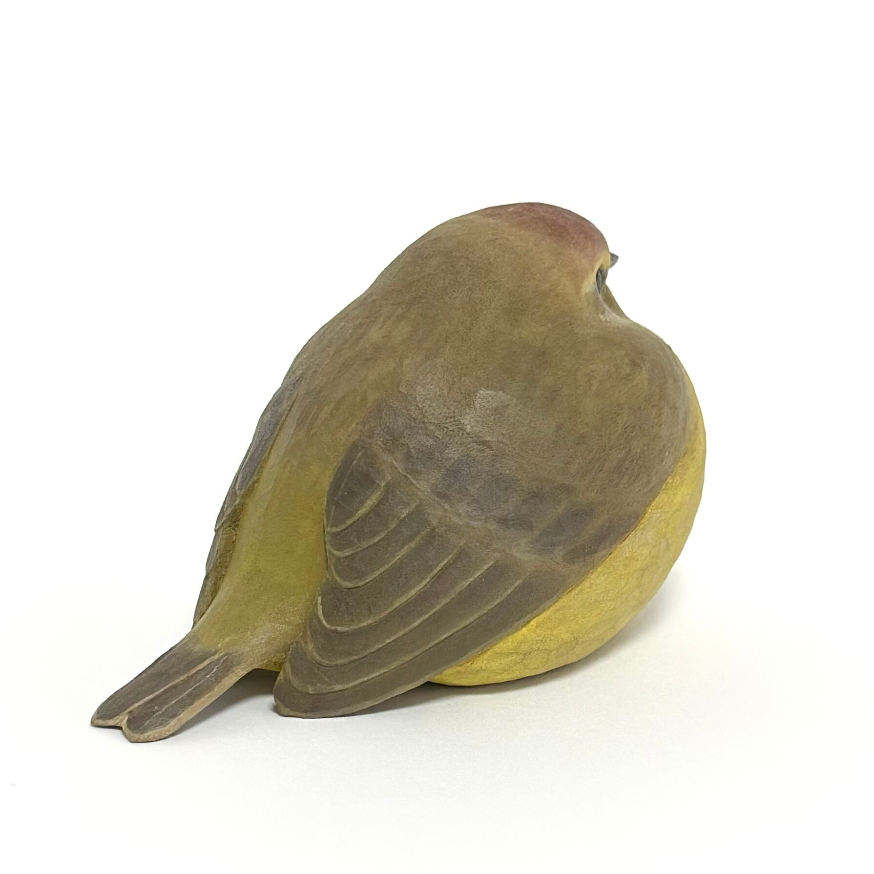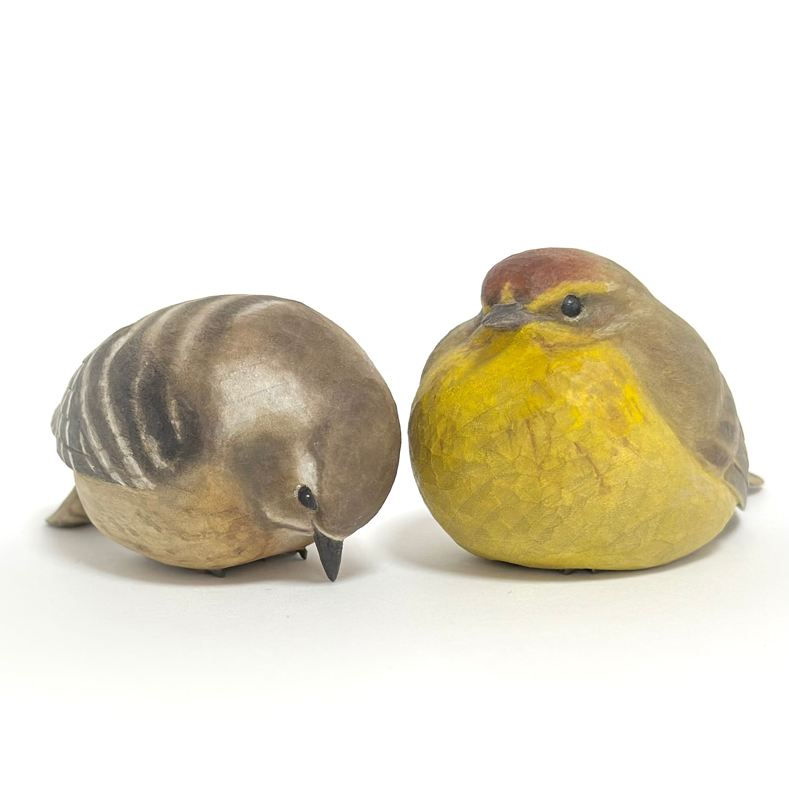 They are wood carvings of a Palm Warbler and a Japanese Pygmy Woodpecker.