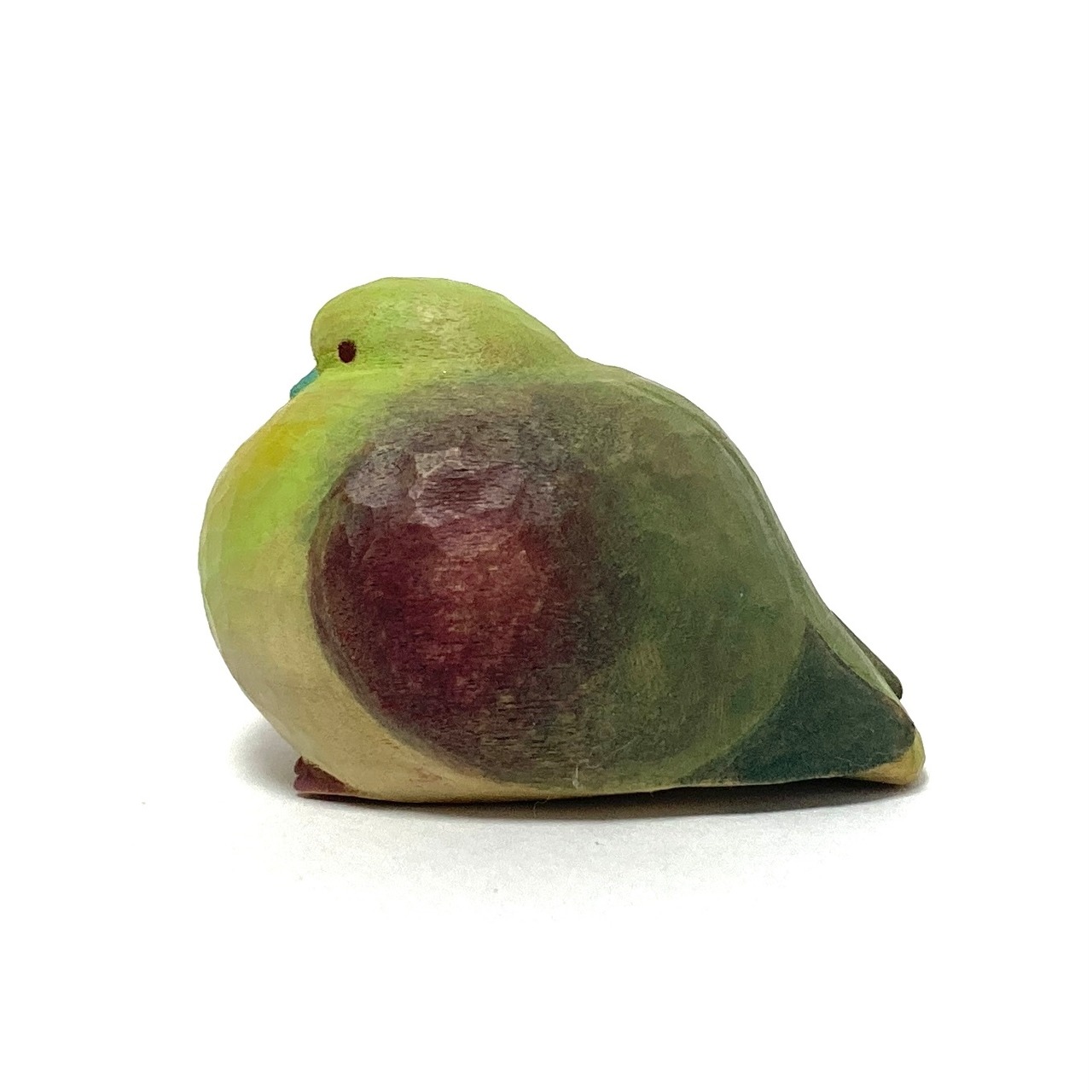 アオバトが丸くなっている様子の木彫りです。