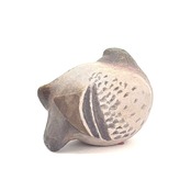 ドバトが振り向いている様子の木彫りです。
